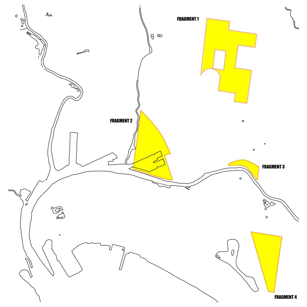 Figure 3. The 4 parts of Melbourne Town Common: Underlying map outline generated by Earth Resources – GeoVic © State of Victoria (Department of Energy, Environment and Climate Action). Retracing by Alessandro Zambelli.